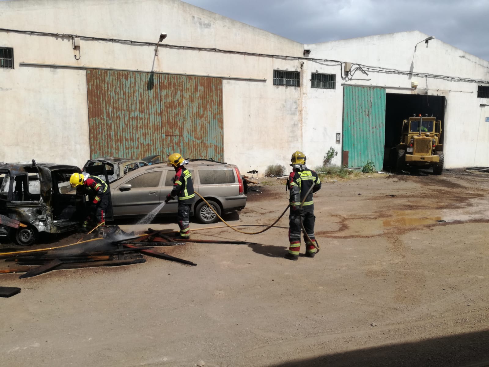 Al menos nueve coches y gran cantidad de basuras ardían en el interior de una nave de Recuperadora Lanzarote
