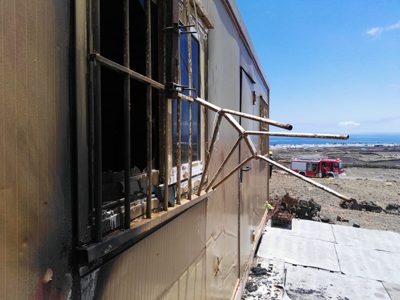 Los Bomberos sofocaban en la tarde noche del lunes un incendio producido en el interior de un contenedor de unos seis metros utilizado como vivienda en la zona del punto limpio de Tías.