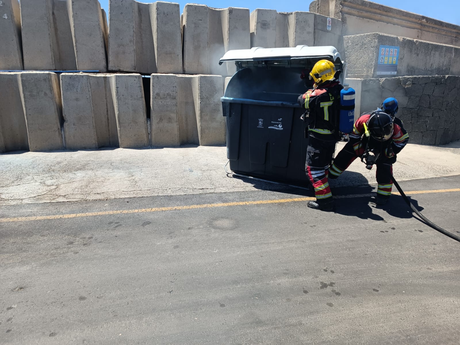 El Consorcio de Seguridad y Emergencias informa de que ha tenido que acudir en la mañana de hoy al parking del Varadero en Puerto del Carmen, en la localidad de Tías, alertados de un incendio de contenedores.