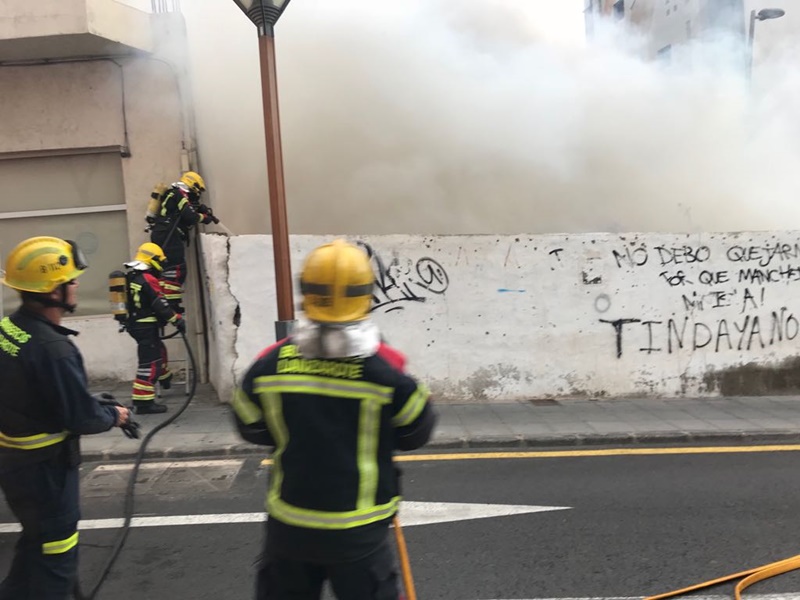 Los bomberos extinguían en la mañana de este sábado un incendio producido en un solar abandonado de Arrecife, ubicado en la capitalina calle La Inés.