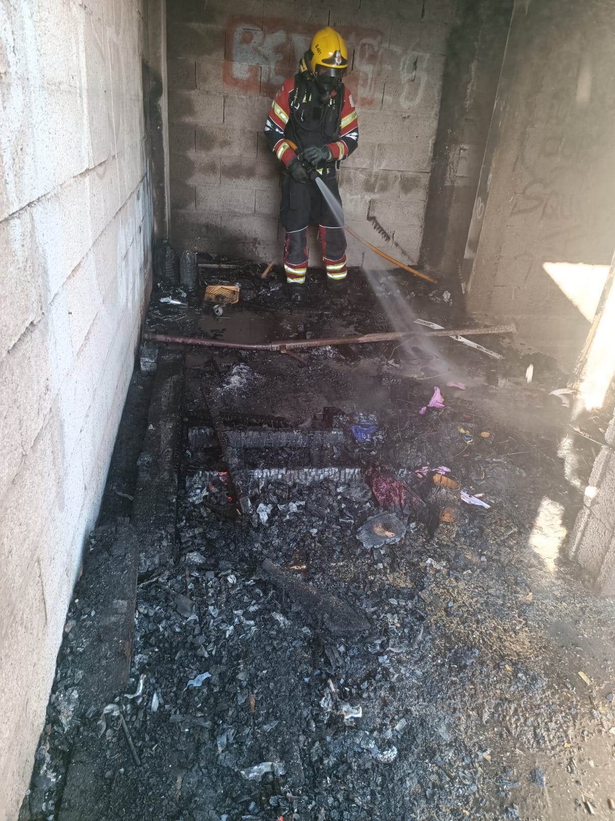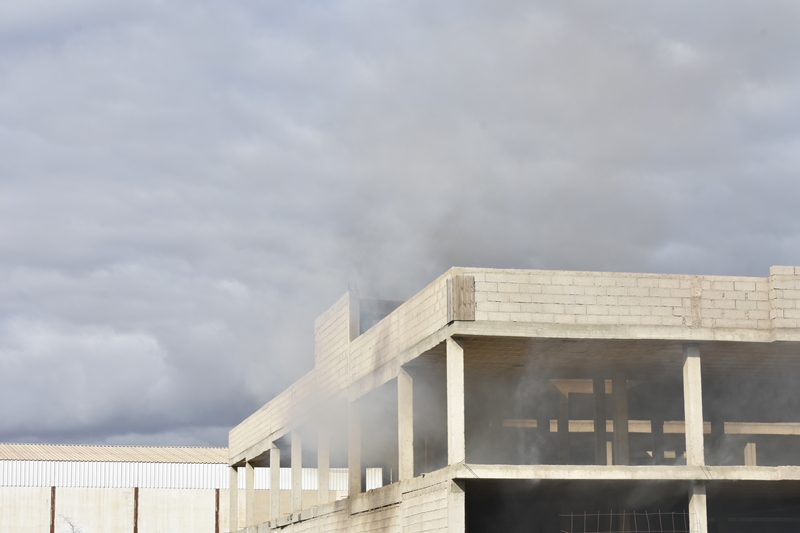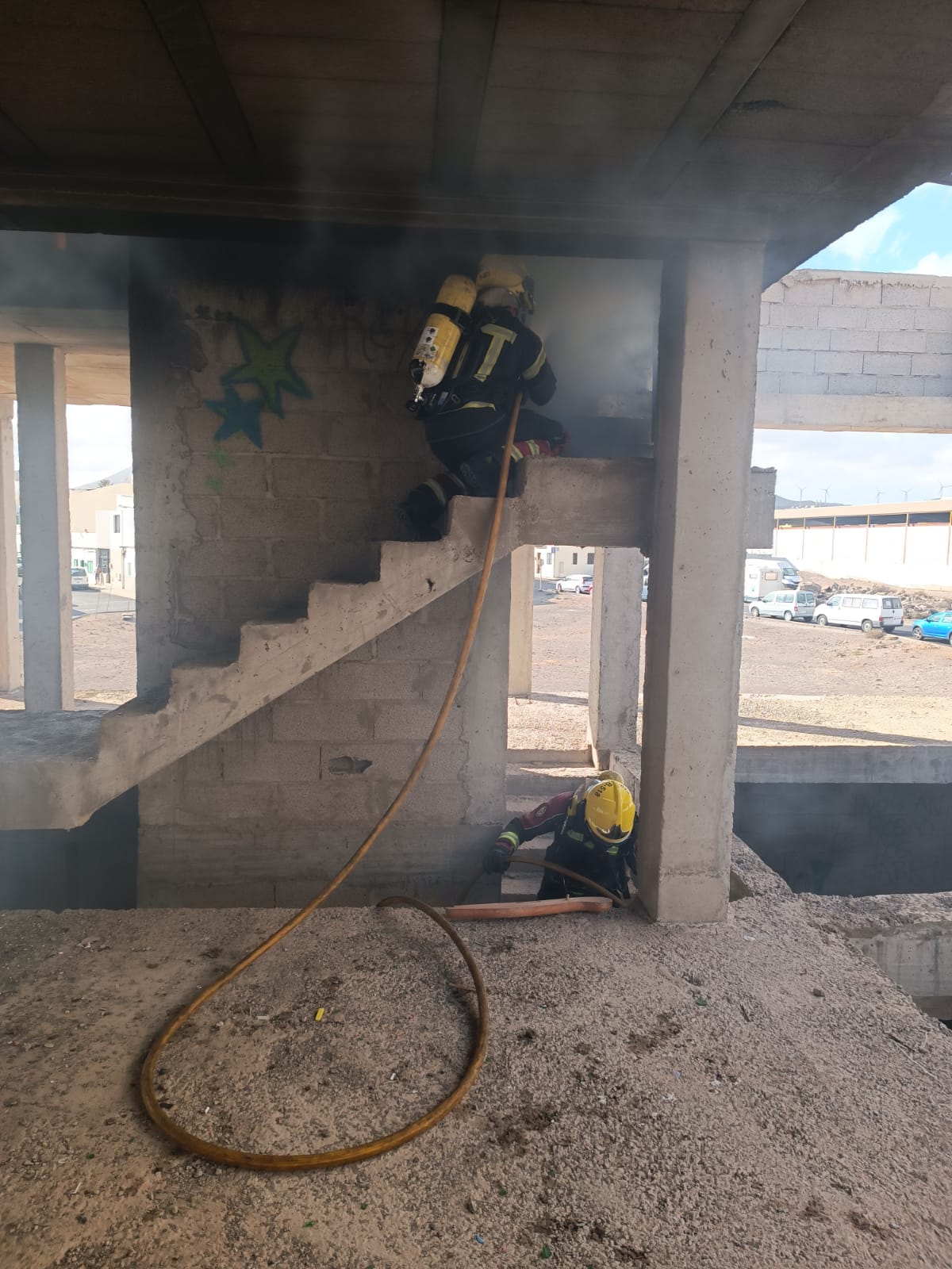 Los bomberos extinguieron en la tarde de este domingo un incendio que se había iniciado en un edificio en construcción abandonado en la calle Isaac Viera del barrio de Argana Baja, en Arrecife.