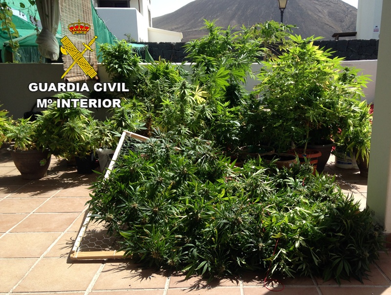 Agentes del Puesto Principal de la Guardia Civil de Yaiza detuvieron a dos personas de iniciales G.S.A. y L.Y., de nacionalidad española el primero y extranjera el segundo, y de 36 y 21 años de edad, respectivamente, como presuntos autores de un delito contra la salud pública, desmantelando una plantación de marihuana en Playa Blanca.