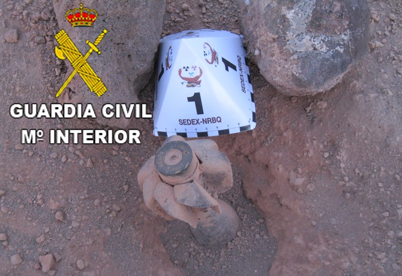 El Grupo Especialista en Desactivación de Artefactos Explosivos (GEDEX) de la Guardia Civil en Lanzarote ha destruído hoy un proyectil a de artillería que fue encontrado en las inmediaciones del vertedero de Zonzamas.