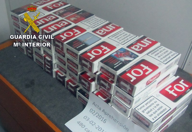 La Guardia Civil del Destacamento Fiscal del Aeropuerto de Lanzarote intervino este miércoles 3 de febrero un total de 480 cajetillas y 640 parquetes de tabaco, procediendo a la denuncia administrativa de las dos personas que las portaban en sus respectivos equipajes por infracciones de tipo fiscal a la Ley Orgánica de reprensión del contrabando.