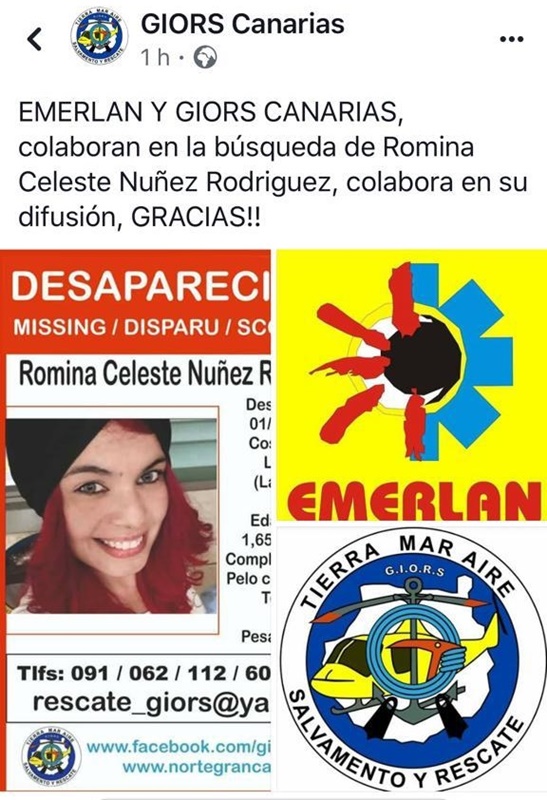 Desde la ONG Rescate Giors Canarias se ha pedido que si alguien puede dar con el paradero de la joven, se pongan en contacto en los teléfonos: 091 | 062 | 112 o el 669-765-763 o en el correo electrónico