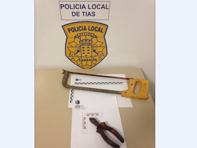 En la zona fueron localizados una sierra y unos alicates, de los que se incautó la Policía Local de Tías. El herido se encontraba junto a otra persona en el momento del incidente así que cuando finalicen las diligencias por la Policía Local, ambos serán trasladados al juzgado.