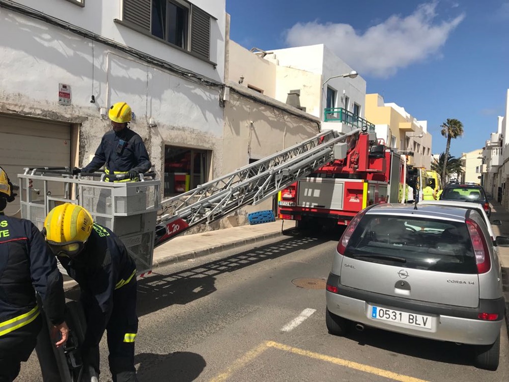 Según informa el Consorcio de Seguridad y Emergencias de Lanzarote con ayuda de la ECO-2 los bomberos accedieron a la terraza de la vivienda en la segunda planta donde con la camilla procedieron a inmovilizar al paciente.