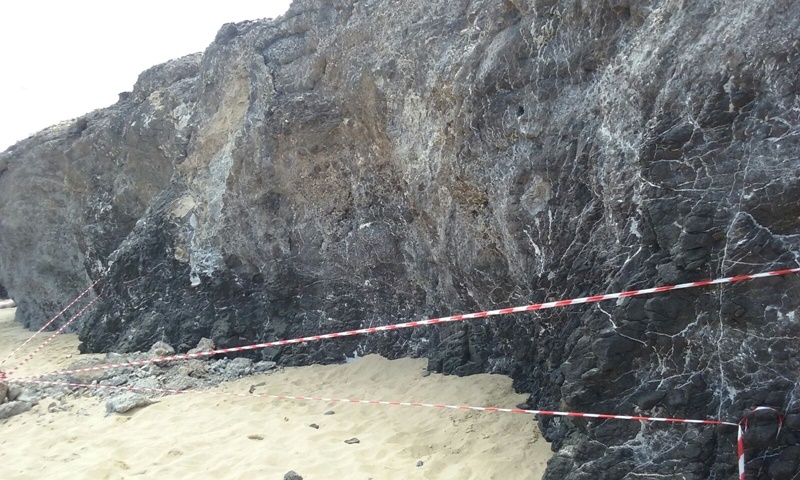 Los bomberos han tenido que acordonar este domingo parte de la playa del Congrio, situada entre el camping y la playa de Papagayo, ante el riesgo de que pudiera haber más desprendimientos. Según ha informado el gerente del Consorcio de Seguridad y Emergencias de Lazarote, Enrique Espinosa, los bomberos fueron alertados por el concejal de Seguridad del Ayuntamiento de Yaiza, Javier Camacho, quien avisó de los desprendimientos de rocas en la playa.