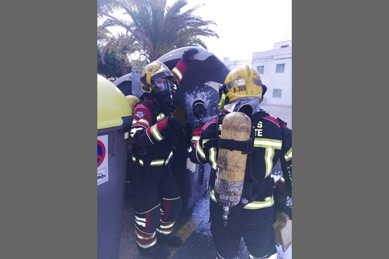 No fue el único incendio de la tarde. Los Bomberos tenían también que apagar el fuego que se producía en un contenedor ubicado en la calle El Peral de Arrecife. Por suerte, en este caso se pudo apagar con rapidez y el contenedor no quedó afectado.
