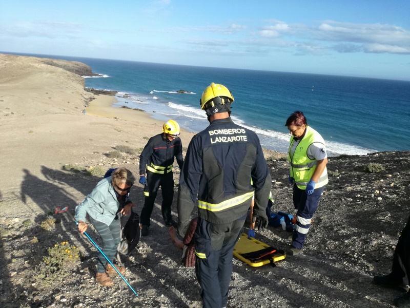 Los bomberos del Consorcio de Emergencias y Seguridad de Lanzarote han tenido que intervenir para poder evacuar a una mujer que había sufrido hacia las 17:00 horas de este viernes una caída en una de las playas de Papagayo, en la zona del camping que lleva su mismo nombre, en el municipio de Yaiza, fracturándose un pie.