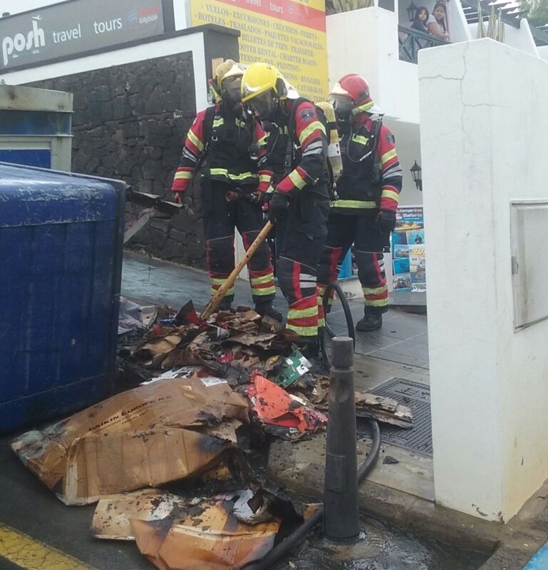 Según informan desde el Consorcio de Seguridad y Emergencias del Cabildo de Lanzarote, alertados por el CECOES los bomberos acudieron de inmediato al lugar del incendio, comprobando que se trataba del incendio de un contenedor de cartón, en el que la Policía Local de Tías había disparado ya un extintor.