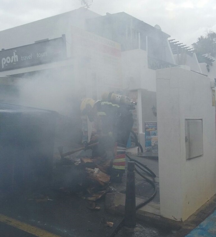Los bomberos extinguen el incendio de un contenedor en Puerto del Carmen