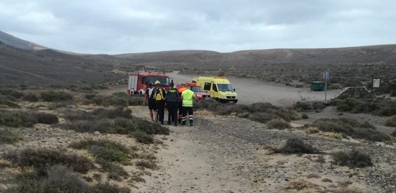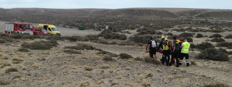 Bomberos del Consorcio de Seguridad y Emergencias del Cabildo de Lanzarote acudieron en la tarde de este viernes al rescate de un hombre que había sufrido una caída en el camino que va de los apartamentos Las Coloradas hasta la Playa de Mujeres en Playa Blanca, en el municipio de Yaiza, alertados por el CECOES.
