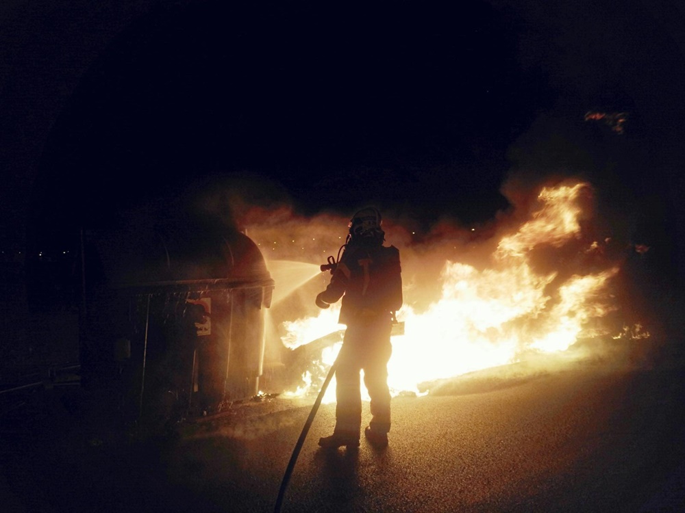 Casi media hora más tarde, sobre las 6.05 horas, el mismo cuerpo de efectivos acuden a la calle Tindaya para sofocar las llamas de tres contenedores y uno de cartón.