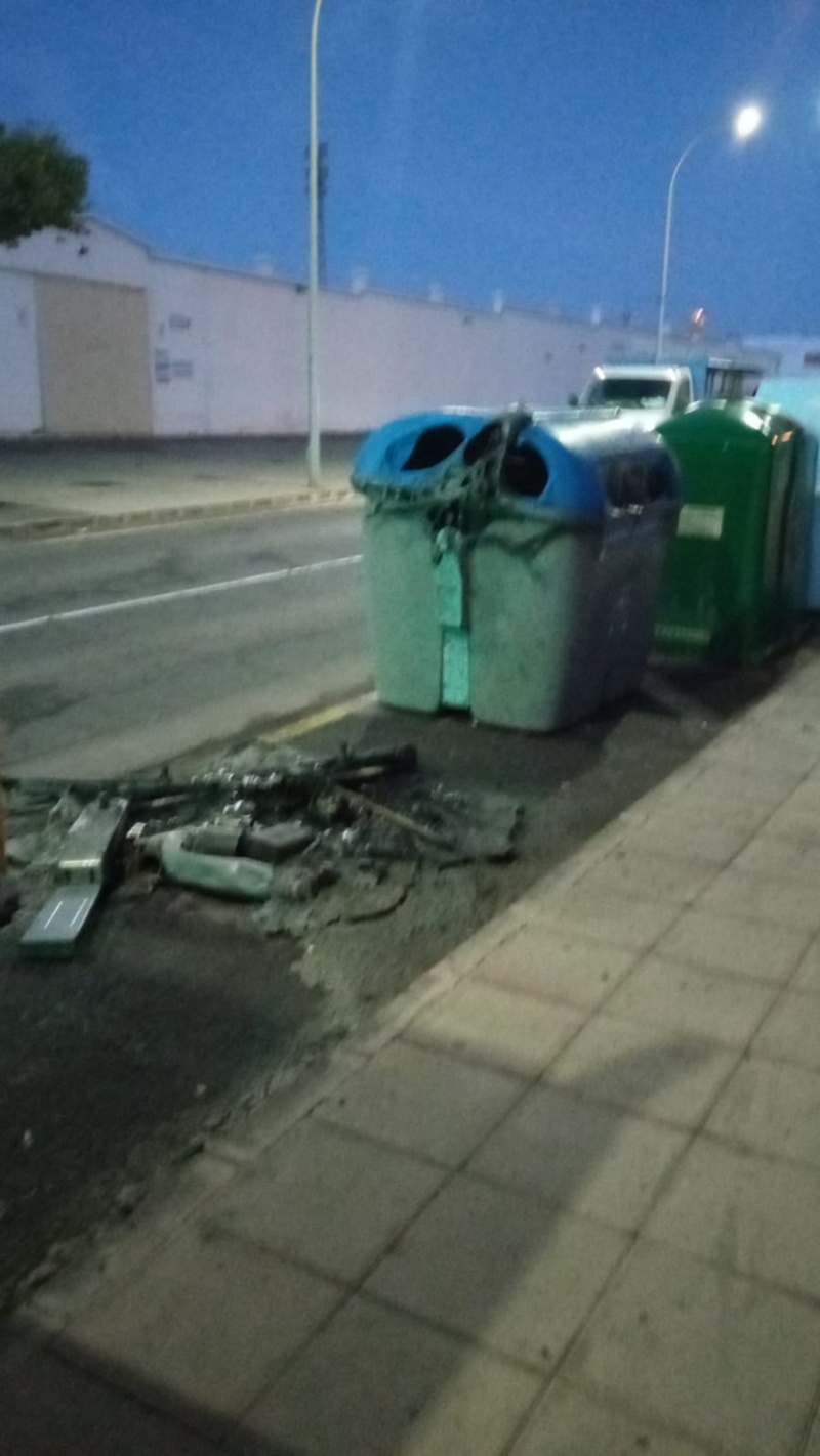 Finalmente una vez sofocado el fuego en todos los puntos afectados, el coche quedó totalmente destrozado y de los siete contenedores quemados, cuatro de ellos quedaron inservibles.