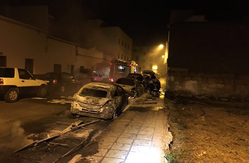 Sin embargo al personarse en el lugar vieron como el fuego se había propagado a los coches colindantes quedando dos de ellos completamente quemados y uno también afectado en menor medida.
