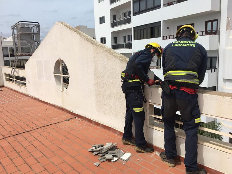 Los bomberos del Consorcio de Seguridad y Emergencias de Lanzarote han tenido que intervenir, la tarde de este sábado, en un inmueble ubicado en La Plazuela de Arrecife por la caída de cascotes en la vía pública.