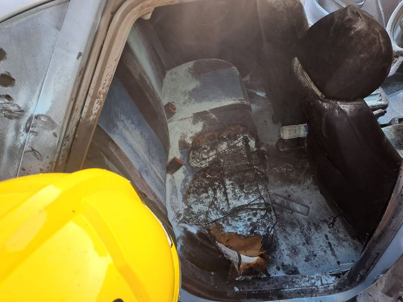 El vehículo tenía la puerta trasera derecha sin seguro y la puerta del conductor también sin asegurar, por lo que ambas podían abrirse. Cuando los bomberos abrieron la puerta trasera derecha, ardía el asiento trasero por la parte del sentón, por lo que procedieron a terminar de enfriarlo con agua hasta su total extinción, teniendo que retirar parte del mismo. Una vez terminada la extinción del fuego, se informó a central y se dio por finalizado el servicio.