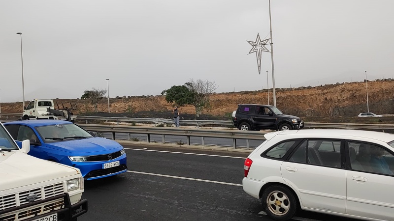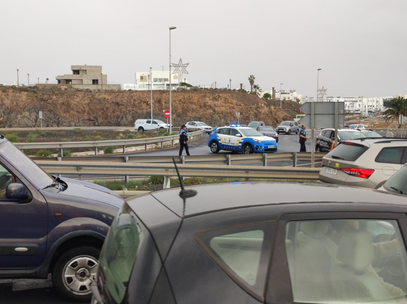 Debido al accidente, que no ha provocado ningún herido, la Policía Local de Arrecife cortó el tráfico durante unos veinte minutos, provocando algunos atascos y retenciones.