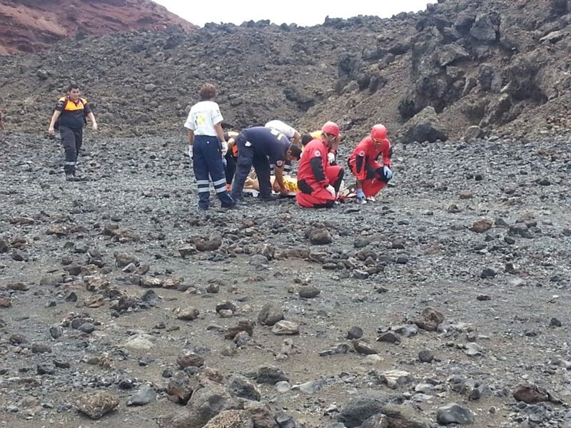 Los efectivos de Protección Civil, con apoyo de un sanitario de la empresa SIA, que estaba de servicio en la Triyaiza Run de Playa Blanca, evacuaron al herido y lo trasladaron hasta un lugar en el que pudo acceder la ambulancia del SUC. Policía Local de Yaiza y Guardia Civil colaboraron con las unidades de rescate.