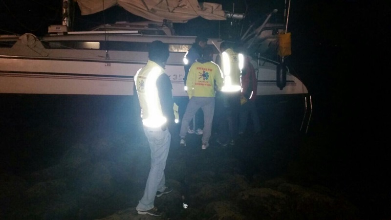 Al llegar a la zona, los efectivos de Emerlan comprobaron que se trataba de un catamarán de 10 metros de eslora, con varios tripulantes a bordo de diferentes nacionalidades. Se priorizó entonces la seguridad de estos y se acudió a su rescate, poniéndoles a salvo en la orilla.