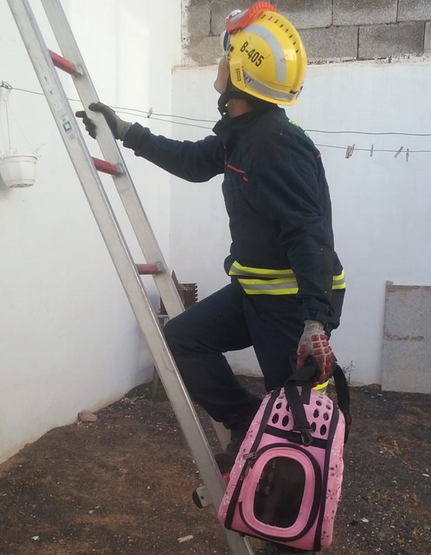Bomberos del Consorcio de Seguridad y Emergencias del Cabildo de Lanzarote tuvieron que acudir este domingo a rescatar a un gato que estaba atrapado en el patio interior de una vivienda de Arrecife.