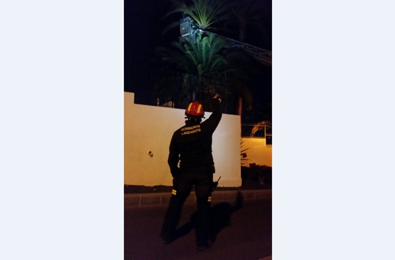 Bomberos del Consorcio de Seguridad y Emergencias rescataron en la noche de este miércoles a un gato de lo alto de una palmera en Puerto del Carmen.