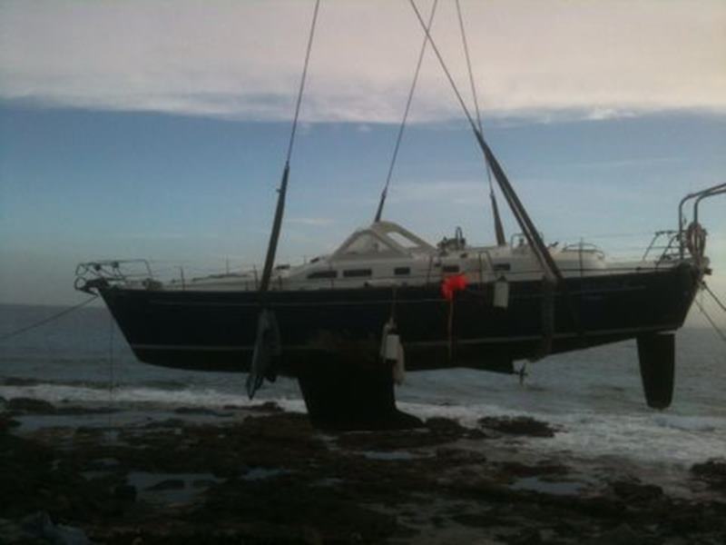 Las maniobras para conseguirlo comenzaron a las 9:00 horas y concluyeron cerca de las 17:00 horas. Antes de rescatar el velero, hubo que desarmar el mástil y quitar otros objetos de la embarcación.