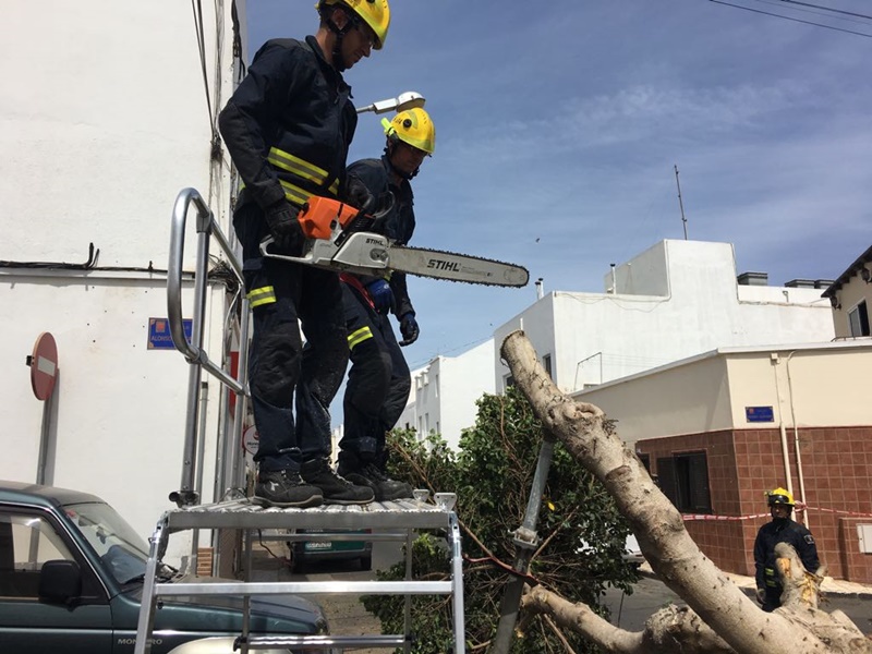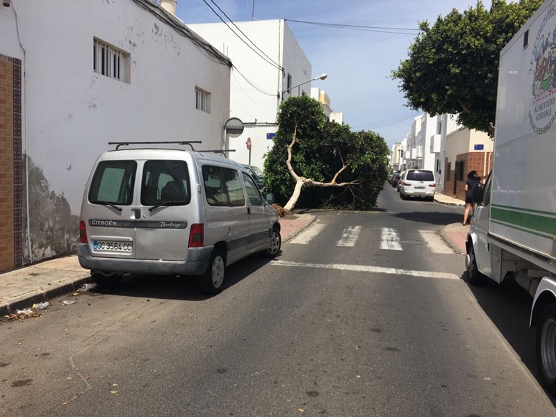 La calle Alonso Quesada de Arrecife se convertía hacia las 15:30 horas en escenario de un aparatoso incidente al caerse un árbol y casi golpear a un coche que se encontraba allí aparcado.
