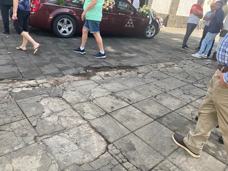 El deterioro del pavimento de la plaza de Las Palmas en Arrecife ha sido probablemente el motivo de la caída de un hombre, y que provocó que la mujer que le acompañaba se desmayase
