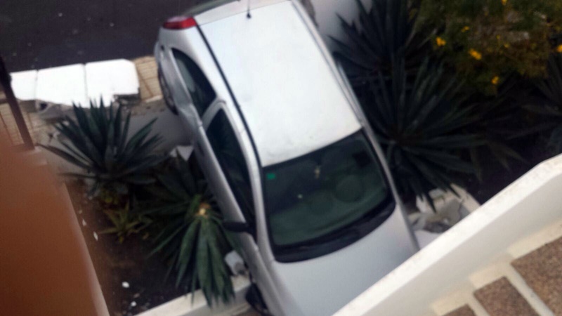 El accidente tuvo lugar en la calle Tinecheide, cerca del Centro Comercial Atlántico. Tal y como se ve en las fotografías enviadas por un lector, se requirió una grúa para retirar el vehículo.