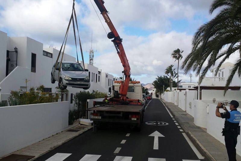 Se empotra con el coche contra el muro de una vivienda en Puerto del Carmen