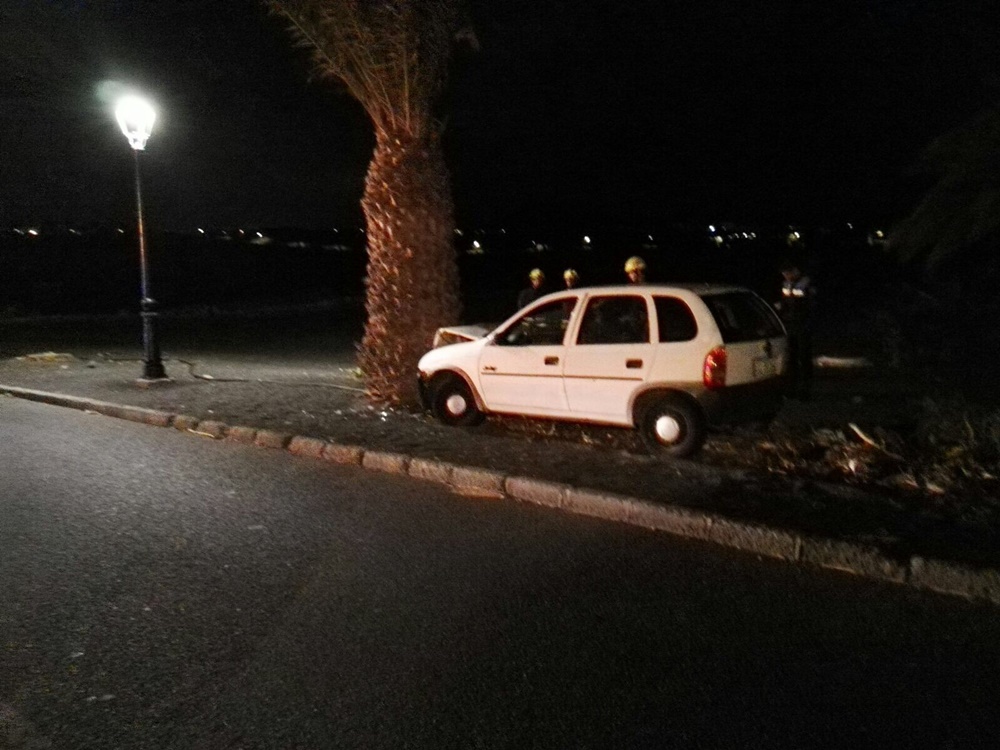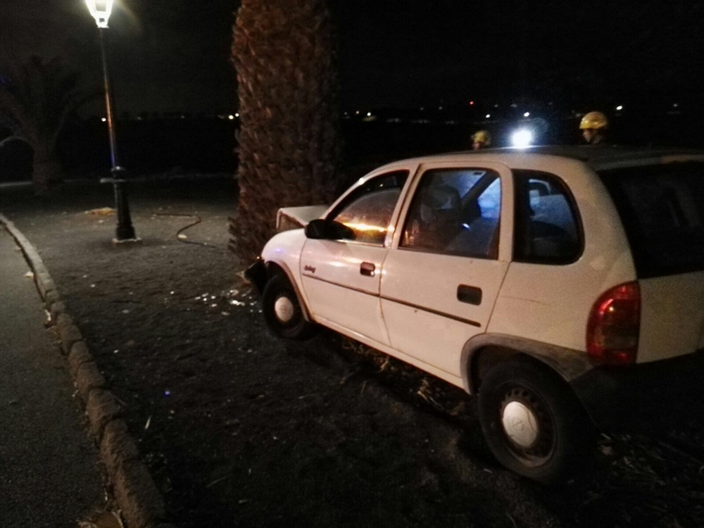 En la noche de ayer jueves un vehículo modelo Opel Corsa se salía de la vía en la avenida de Las Palmeras en Costa Teguise, empotrándose contra una palmera de los lindes de la carretera.