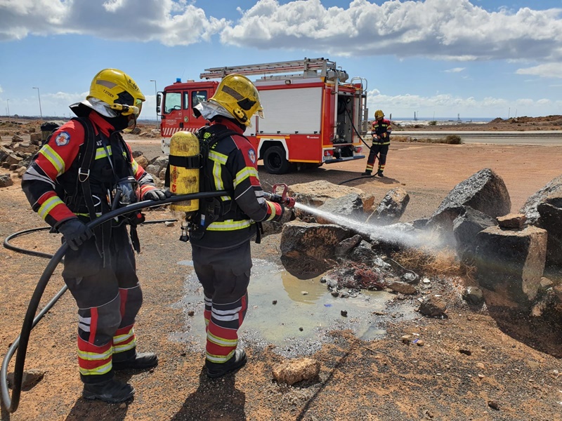 Los Bomberos apagan un incendio de cables producido en la Calle Trillo de Arrecife, a la altura del Cementerio capitalino.