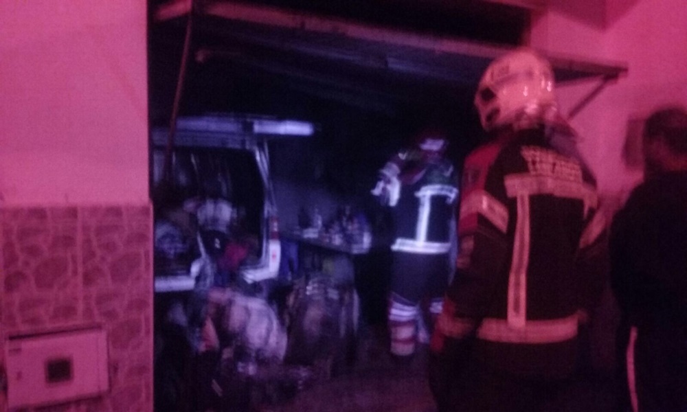 El fuego calcinaba hacia las 19:22 horas un vehículo aparcado en un garaje de la calle Málaga de Arrecife.