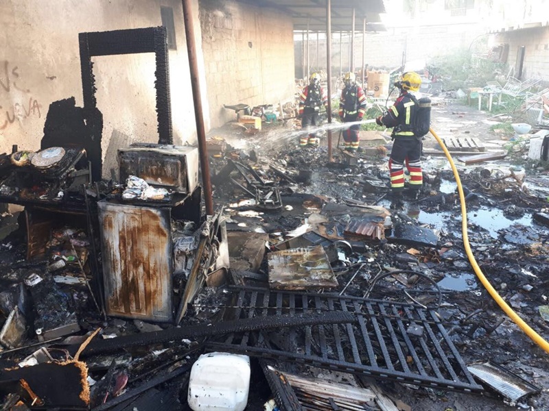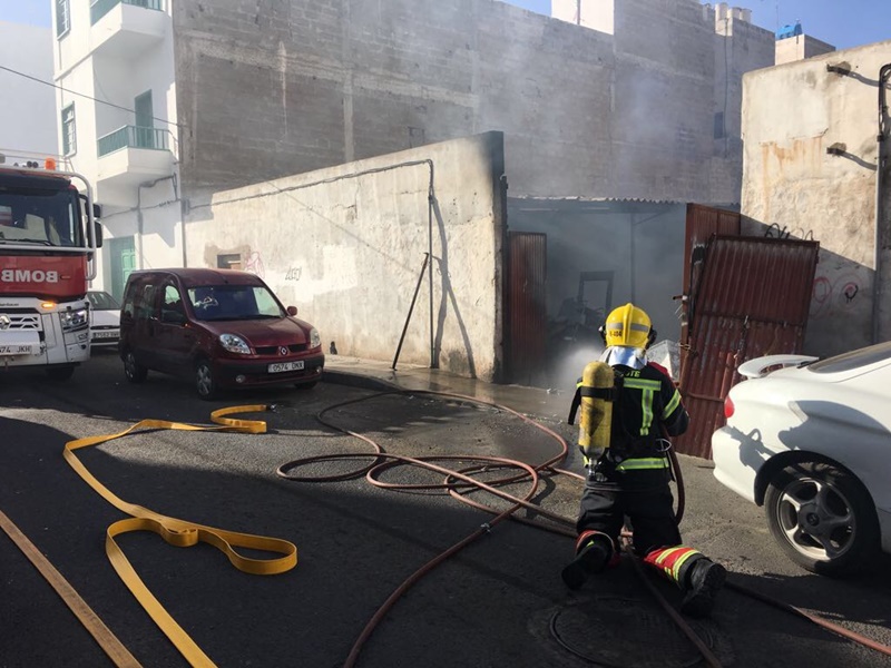 Los bomberos del Consorcio de Seguridad y Emergencias del Cabildo de Lanzarote sofocaron este viernes el incendio de un solar con algunas habitaciones, ubicado en la calle La Inés de Arrecife, en el barrio capitalino de La Vega, que eran utilizadas por okupas como viviendas, según apuntan desde el Consorcio.