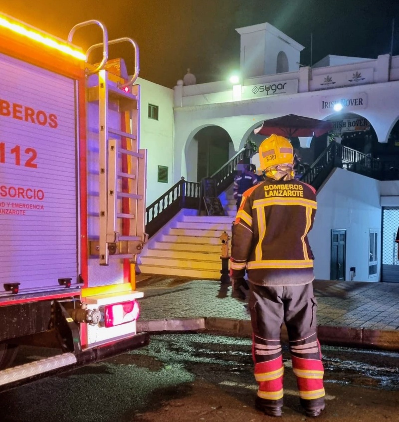 Los Bomberos recibían en la noche del jueves el aviso del Consorcio de Seguridad y Emergencias de que se había incendiado un restaurante ubicado en la calle Roque Nublo de Puerto del Carmen.