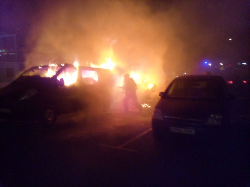 Los Bomberos han vuelto a tener una nueva madrugada ajetreada. En esta ocasión, debido al incendio de cuatro vehículos en La Marina de Arrecife.