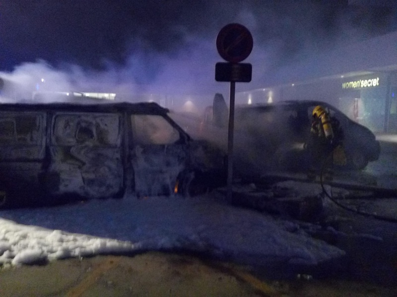 Alertados por el Consorcio de Emergencias acudieron a La Marina para comprobar que, en efecto, ardían cuatro vehículos y que el fuego había provocado un importante derrame de combustible de los mismos que tuvo que ser contenido con espuma. El fuego se sofocó con agua pulverizada.