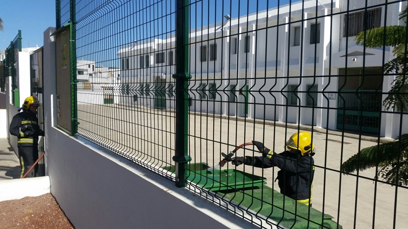 Los bomberos sofocaban en la tarde del miércoles un incendio de un contenedor orgánico ubicado en el colegio público de Argana, situado en la Calle Campoamor de Arrecife.