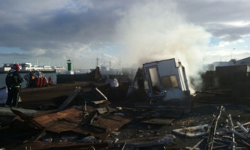 Bomberos del Consorcio de Seguridad y Emergencias tuvieron que acudir a extinguir en la tarde de este viernes un incendio que se desató en un barco para desguace, ubicado en Puerto de Naos, en Arrecife.