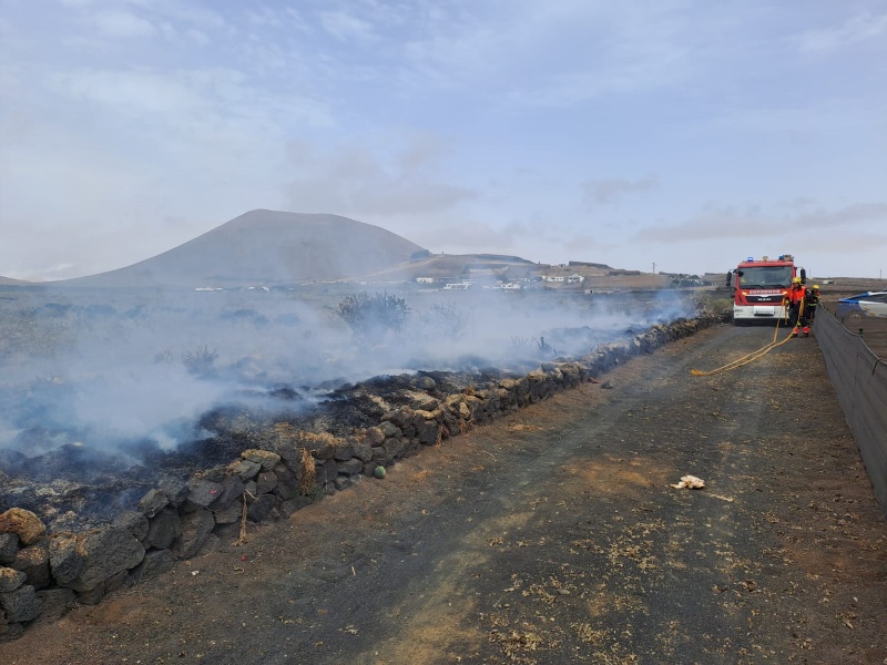 Los Bomberos sofocaban el martes un incendio en El Islote. Alertados por el Consorcio de Seguridad y Emergencias de que había una alerta por fuego en dicha localidad, se acercaron al lugar y comprobaron que se trataba de un incendio de rastrojos en la carretera que va desde Mozaga al Peñón.