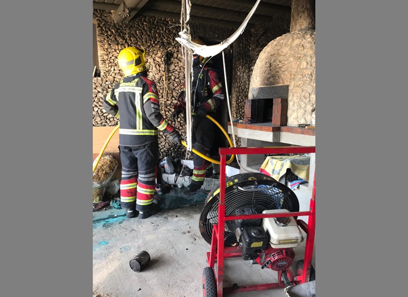 Los Bomberos extinguían un incendio que se producía en un cuarto de aperos ubicado en la LZ-2, altura km.16, en Yaiza, hacia las 22:00 horas.