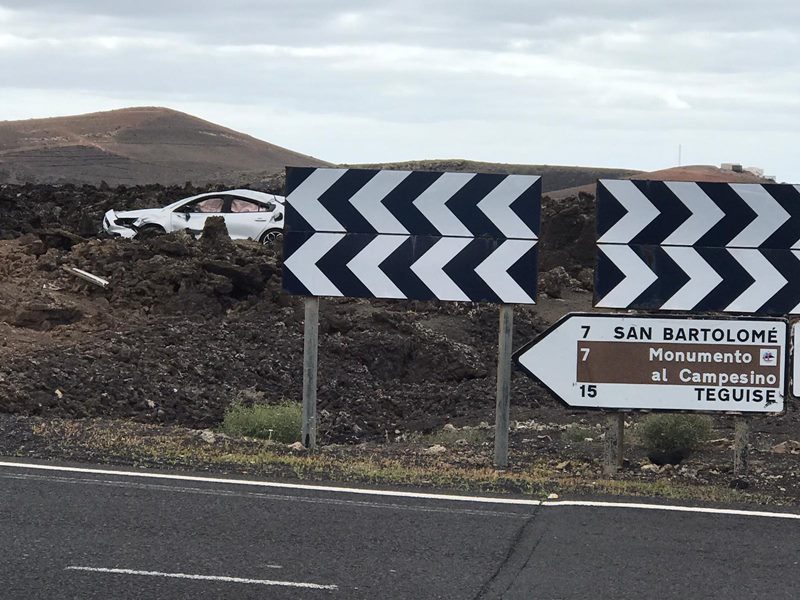 Un vehículo sufrió una salida de vía en la carretera LZ-56 en las inmediaciones del volcán de Tinguatón. El coche fue abandonado por su conductor. Los bomberos del Consorcio de Seguridad constataron que el turismo sufrió daños considerables al salirse de la carretera y dar varias vueltas hasta quedar de nuevo sobre sus cuatro ruedas. La zona fue acordonada para evitar así que la gente, al verlo, pudiera llamar a emergencias.