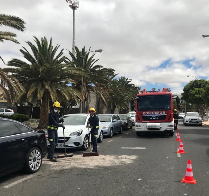 Según informa el Servicio de Seguridad y Emergencias del Cabildo de Lanzarote, alertados por la Policía local sobre las 11.14 horas, "nos dirigimos al servicio y una vez en el lugar procedemos a desconectar batería y a limpiar la calzada con cepillo y sepiolita".
