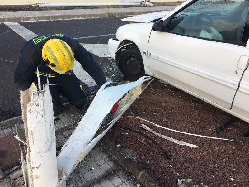 Un vehículo se salía de la vía en la mañana del domingo e impactaba contra una farola en Playa Blanca, concretamente en la zona del colegio de la localidad turística.