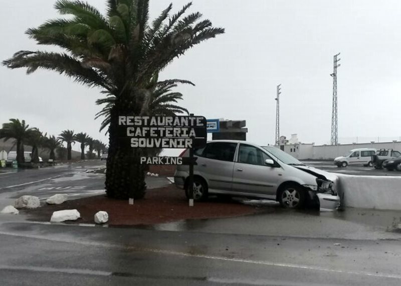 En Yaiza, Lancelot Digital se encontró con un coche empotrado contra un muro en las cercanías del campo de fútbol.