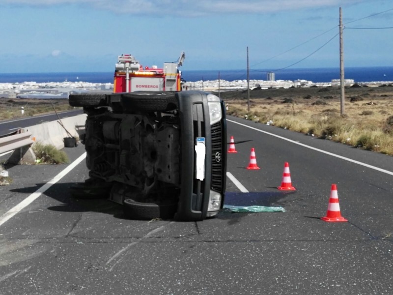 Un hombre de 62 años resultó herido leve al volcar el vehículo que conducía mientras circulaba por la carretera Lz-20, que une la capital con el municipio de San Bartolomé. El suceso ocurrió en la tarde de este sabado, en concreto, poco antes de las 16:30 horas, en las inmediaciones de la planta desaladora ubicada en la zona.