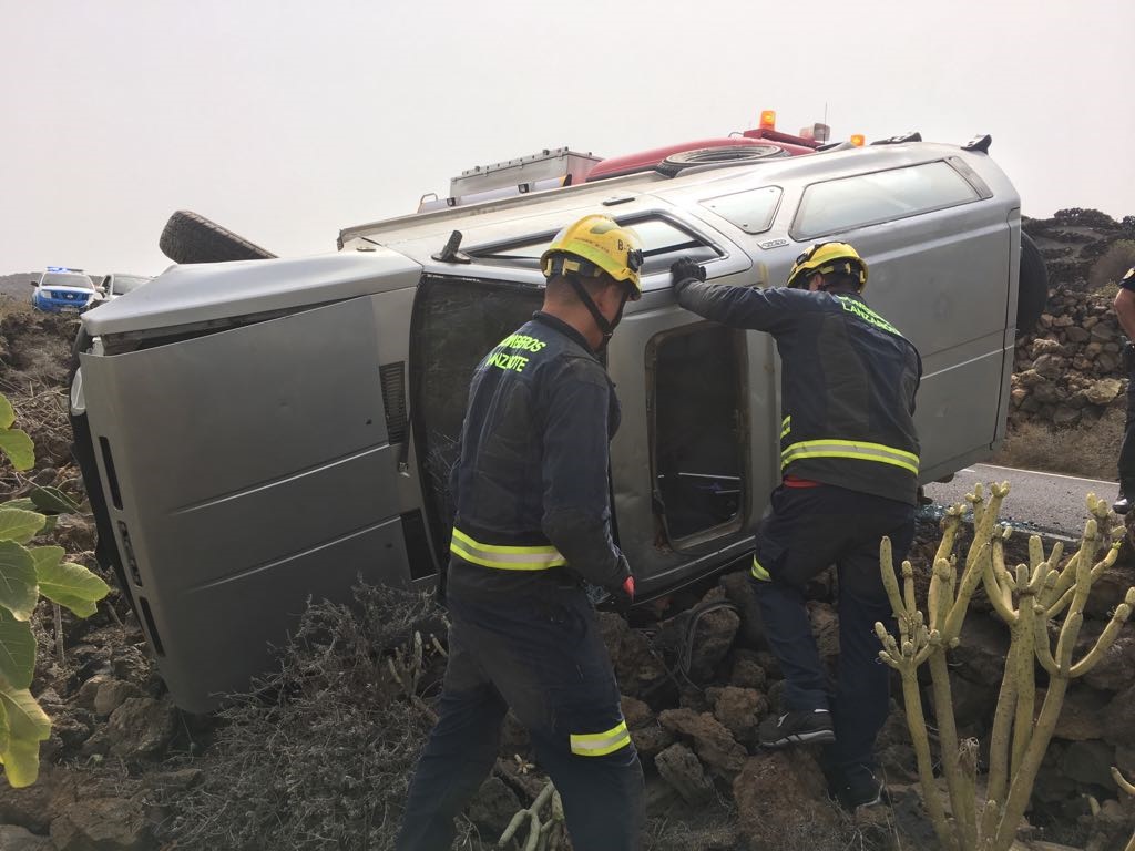 Un conductor octogenario vuelca su coche en la carretera de Haría