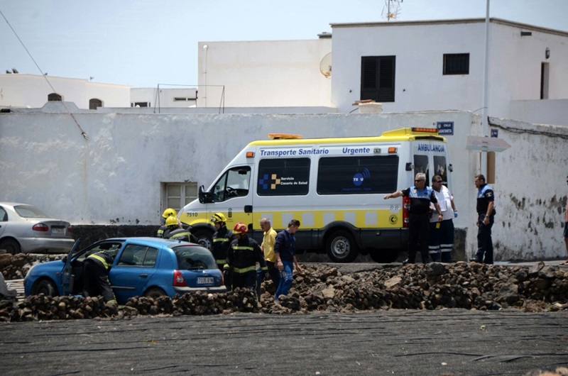 Herido el conductor de un coche tras volcar a la entrada de Güime